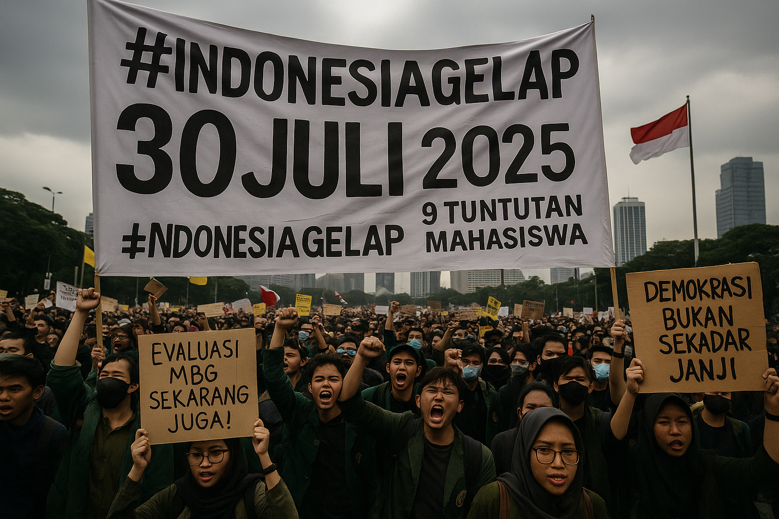 Jakarta, 30 Juli 2025 – Ribuan mahasiswa dari berbagai universitas di seluruh Indonesia kembali memenuhi jalan-jalan utama dalam aksi demonstrasi bertajuk #IndonesiaGelap. Aksi ini menandai fase ketiga dari gelombang protes mahasiswa yang dimulai sejak awal tahun 2025, dan kini memasuki babak baru dengan tuntutan yang semakin tegas.