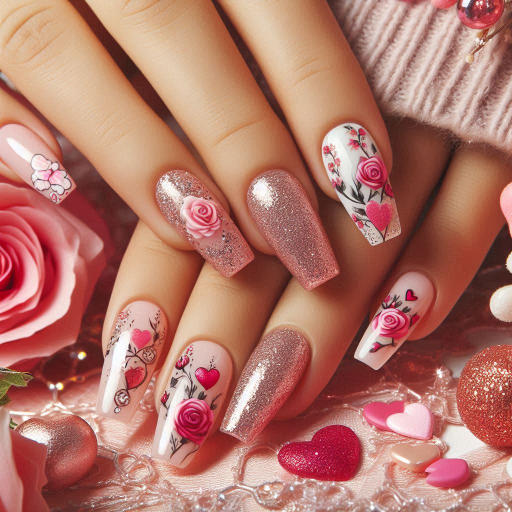 Jika Anda mencari tampilan yang lebih lembut dan romantis, pilihlah warna pastel untuk desain kuku Valentine Anda. Warna-warna seperti pink muda, lavender, dan mint memberikan kesan elegan dan manis. Anda dapat menggabungkan warna-warna ini dalam berbagai pola seperti garis-garis diagonal, polka dots, atau ombre. Selain itu, tambahkan sedikit glitter atau rhinestone untuk memberikan sentuhan akhir yang menawan.
