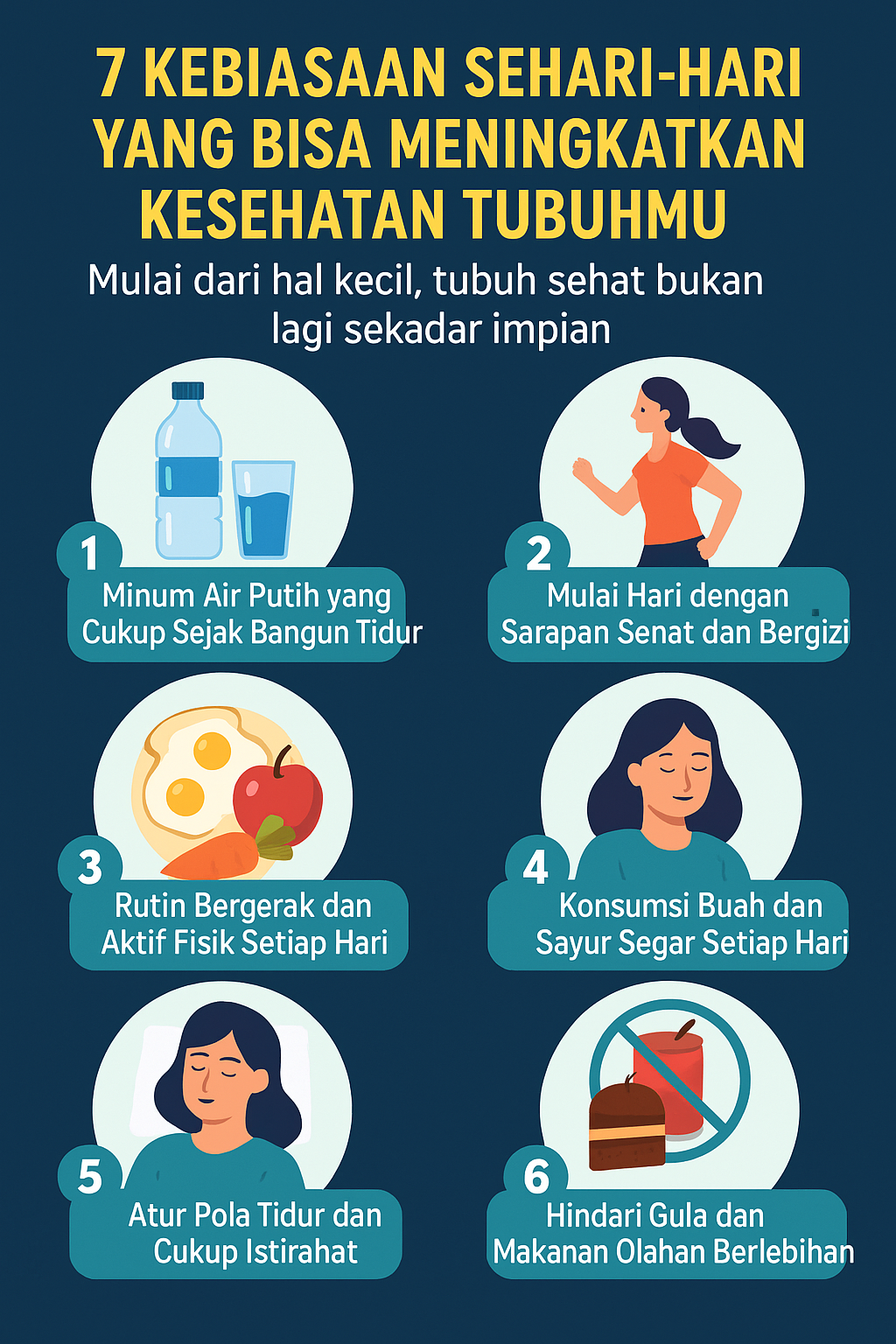 Kesehatan tubuh adalah investasi jangka panjang yang dimulai dari rutinitas harian. Oleh karena itu, membentuk kebiasaan kecil yang positif dapat memberikan dampak besar. Artikel ini akan membahas tujuh kebiasaan sederhana yang bisa kamu lakukan setiap hari untuk menjaga dan meningkatkan kesehatan tubuh secara alami dan konsisten.