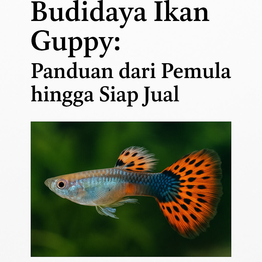 Gambar sampul artikel panduan lengkap budidaya ikan guppy yang menjelaskan cara memelihara, membiakkan, dan memasarkan ikan guppy bagi pemula hingga siap jual.