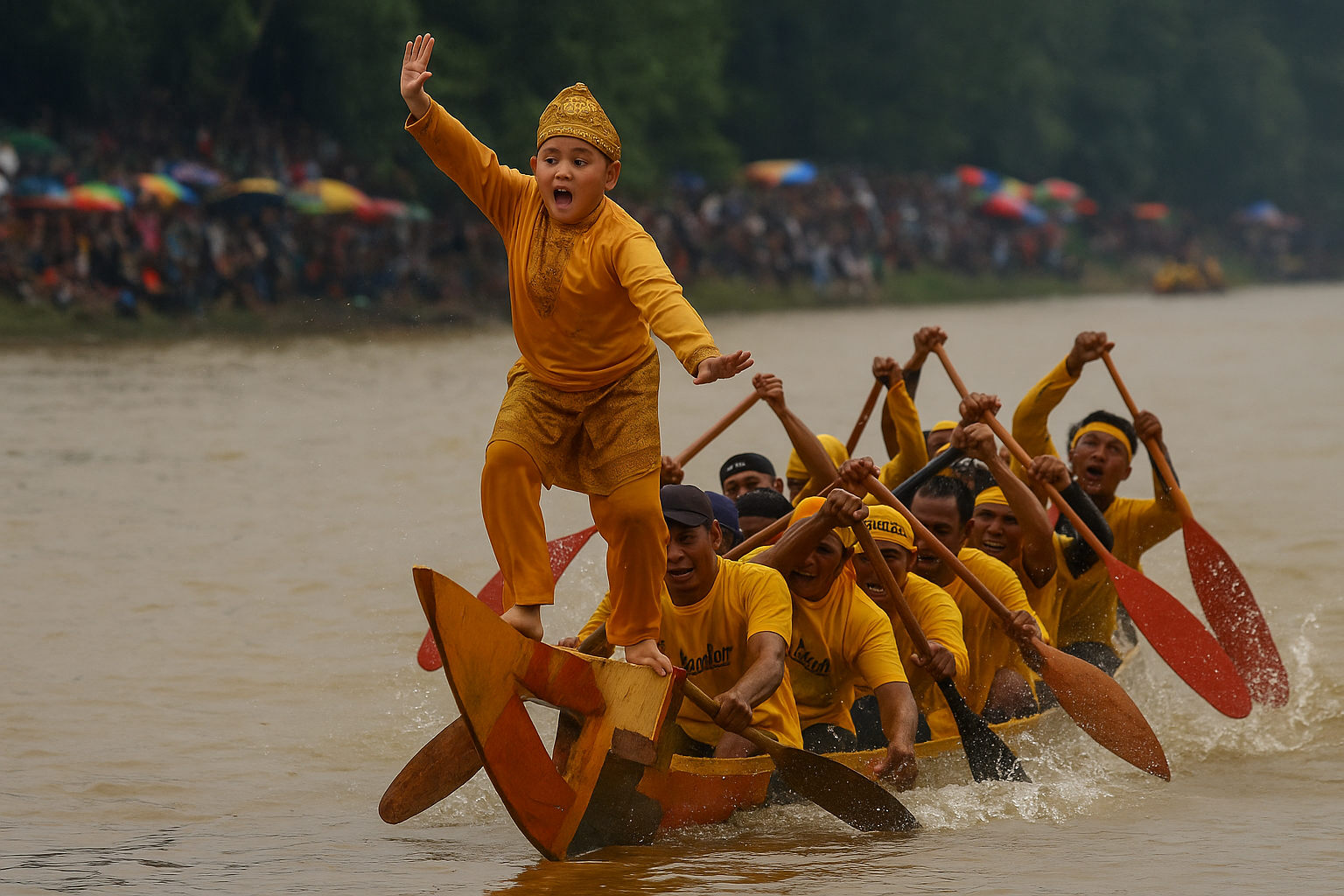 Pacu jalur, olahraga tradisional khas Kabupaten Kuantan Singingi (Kuansing), Riau, kini menjadi perbincangan hangat baik di media sosial dalam negeri maupun luar negeri. Bukan hanya karena keunikannya, tapi juga berkat aksi luar biasa seorang anak joki cilik bernama Rayyan Arkan Dikha.