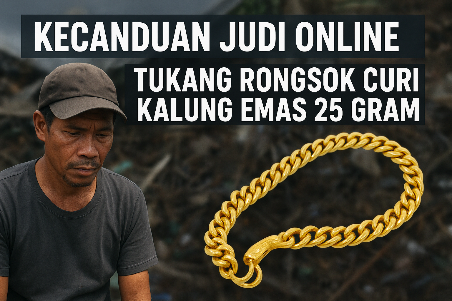 Artikel ini mengangkat kisah nyata: tukang rongsok nekat mencuri kalung emas 25 gram akibat kekalahan di judi online. Lewat cerita ini, kita menyoroti sisi gelap dari kecanduan taruhan daring.