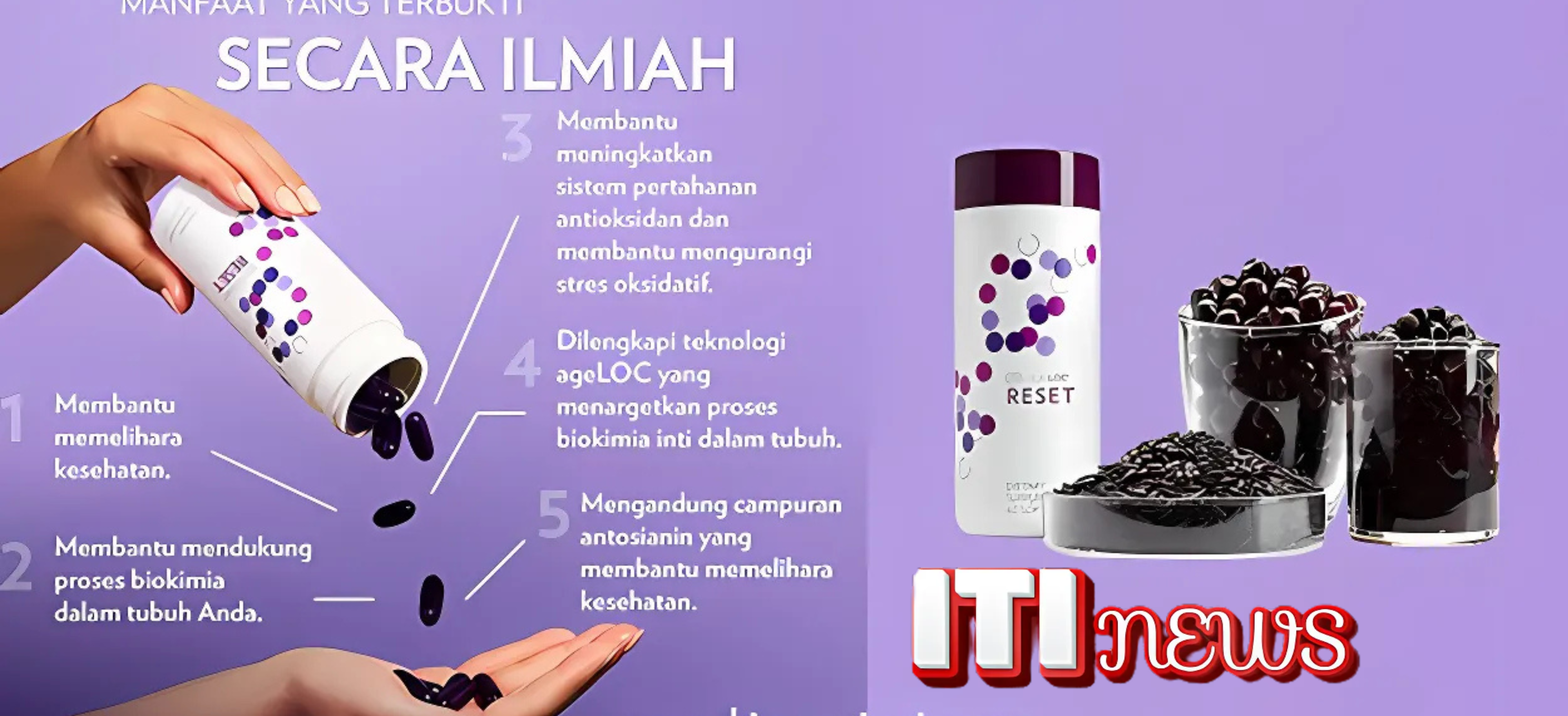ageLOC Reset dari Nu Skin, suplemen kesehatan dengan teknologi antioksidan canggih untuk membantu menjaga keseimbangan biokimia tubuh.