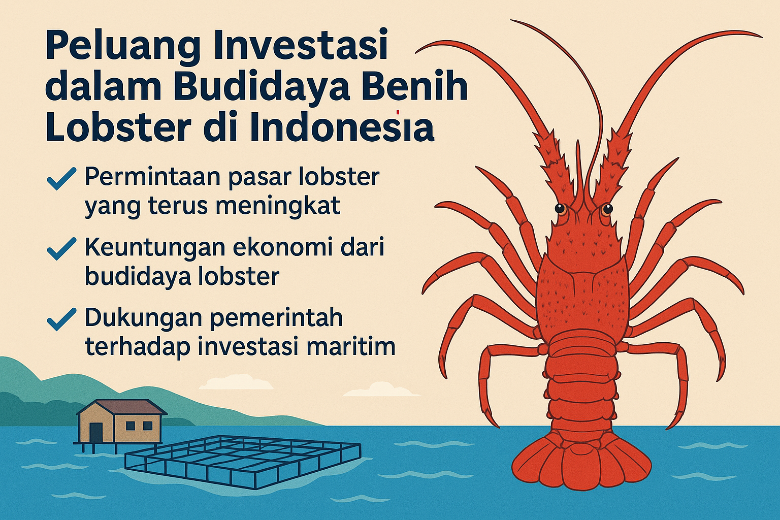 Indonesia memiliki garis pantai terpanjang kedua di dunia, sehingga potensi sektor kelautannya sangat besar. Selain itu, kondisi perairan tropis yang kaya plankton mendukung pertumbuhan biota laut seperti lobster. Oleh karena itu, budidaya benih lobster menjadi peluang emas yang layak dikembangkan karena permintaan pasar global terus meningkat secara konsisten setiap tahun.