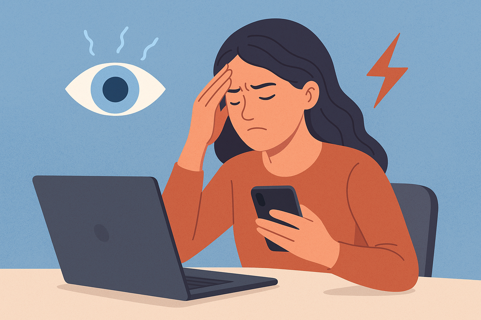 Biasanya terjadi karena menatap layar dari jarak terlalu dekat atau pencahayaan yang tidak ideal.