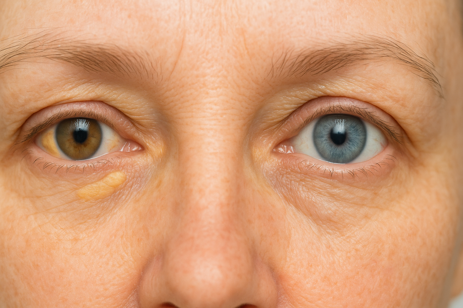 Jika Anda melihat muncul benjolan kekuningan di kelopak mata (khususnya di sudut dekat hidung atau sisi dalam kelopak), jangan langsung panik — namun catat dan jadwalkan pemeriksaan darah (panel lipid).